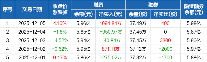 二六三:融资净买入1094.84万元,融资余额5.96亿元(12-05)