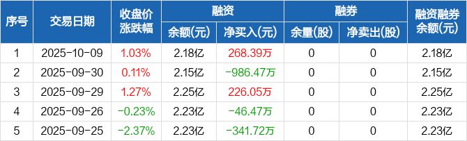 三维化学:融资净买入268.39万元,融资余额2.18亿元(10-09)