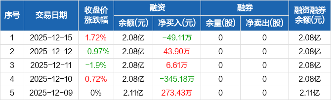 三维化学:融资净偿还49.11万元,融资余额2.08亿元(12-15)