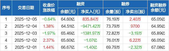 立讯精密:融资净买入835.84万元,融资余额64.6亿元(12-05)