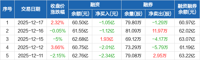 立讯精密:融资净偿还1.05亿元,融资余额60.5亿元(12-17)