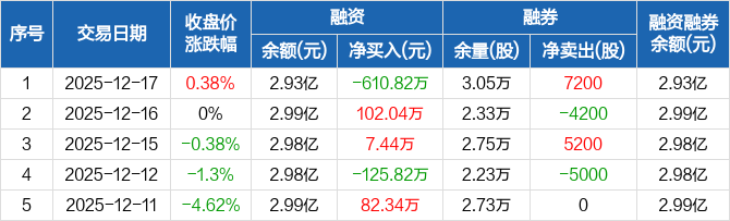 双塔食品:融资净偿还610.82万元,融资余额2.93亿元(12-17)