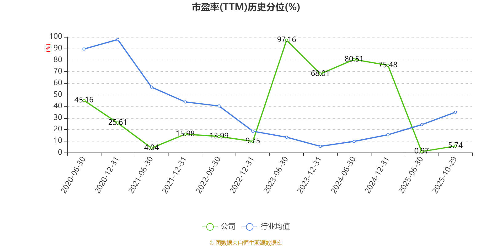 市盈率、市净率为负时,不显示当期分位数,会导致折线图中断。