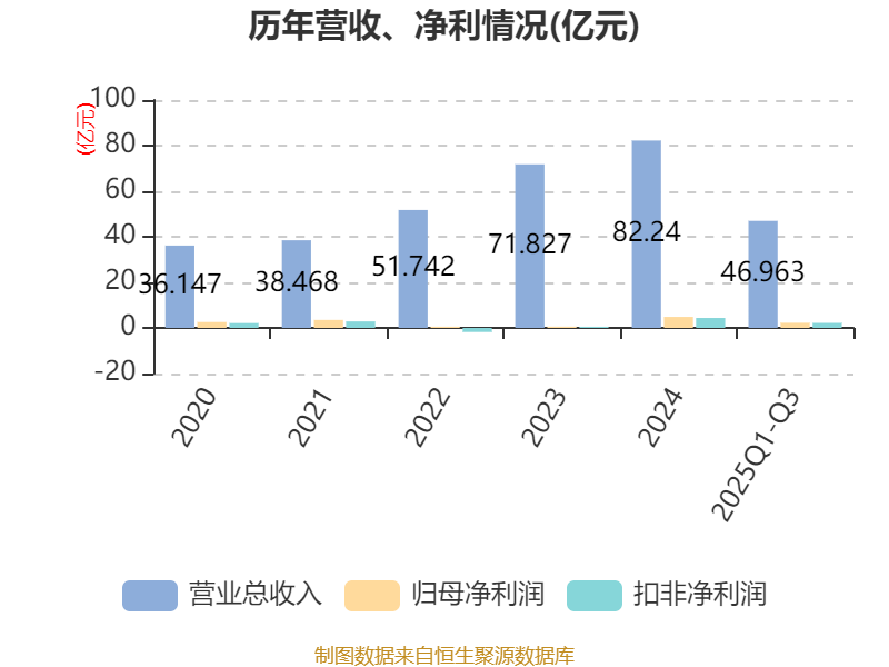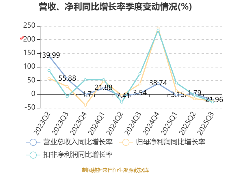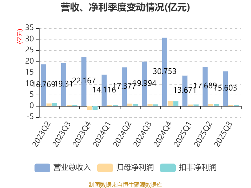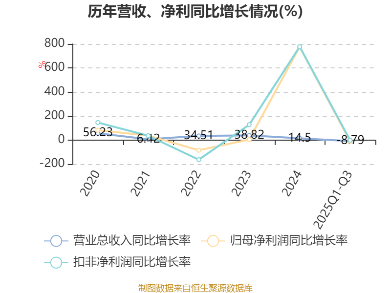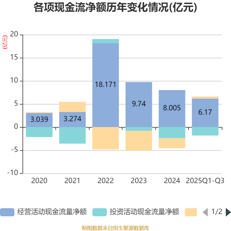 2025年前三季度,公司经营活动现金流净额为6.17亿元,同比增长199.86%;筹资活动现金流净额4461.15万元,同比增加1.3亿元;投资活动现金流净额-1.83亿元,上年同期为-2.65亿元。