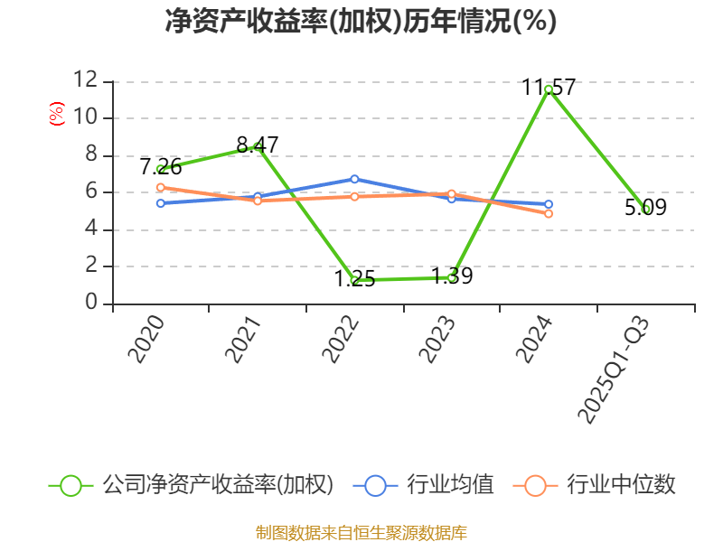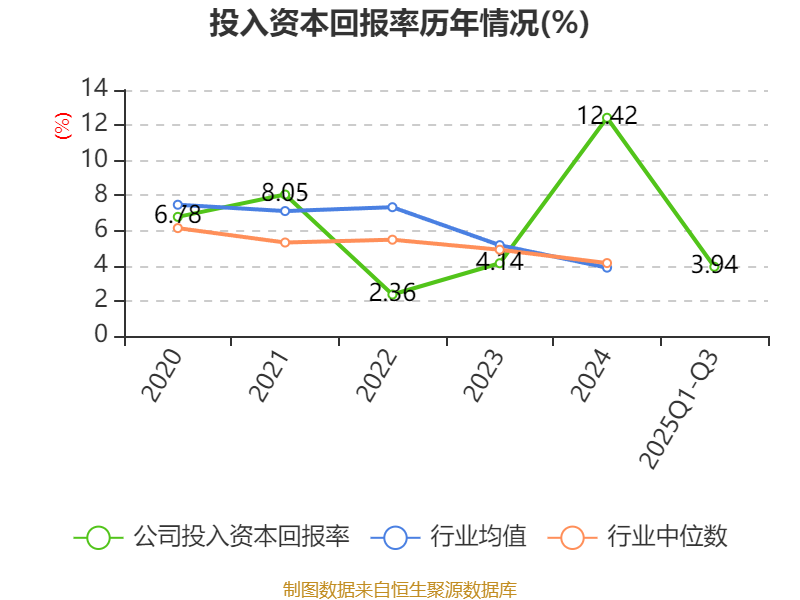 盈利能力方面, 2025年前三季度公司加权平均净资产收益率为5.09%,同比下降1.14个百分点。公司2025年前三季度投入资本回报率为3.94%,较上年同期下降2.27个百分点。