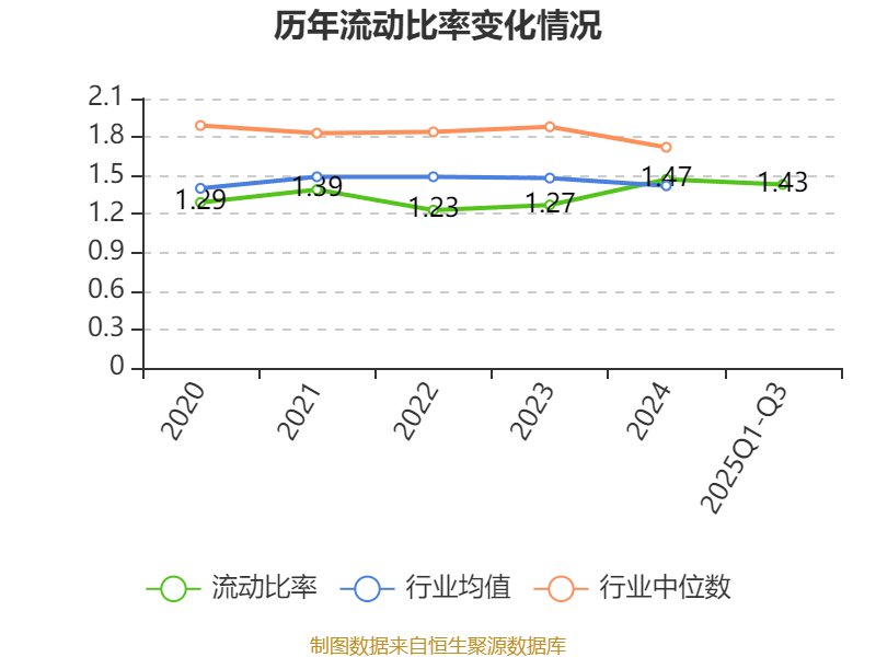2025年前三季度,公司流动比率为1.43,速动比率为1.15。