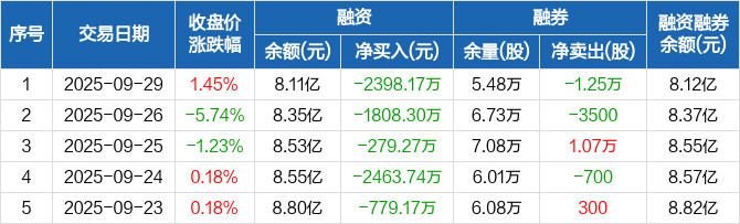 江海股份:连续5日融资净偿还累计7728.66万元(09-29)