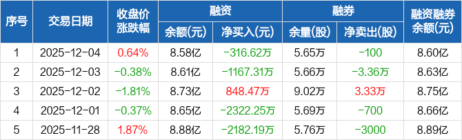 江海股份:融资净偿还316.62万元,融资余额8.58亿元(12-04)