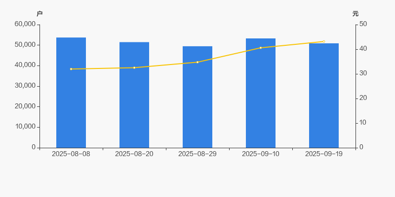 2025年8月8日至今,公司股东户数有所下降,区间跌幅为5.26%。2025年8月8日至2025年9月19日区间股价上涨34.97%。