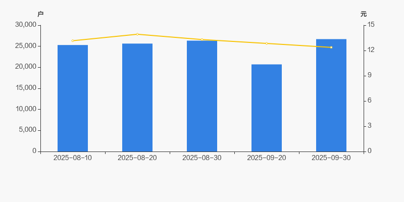 2025年8月10日至今,公司股东户数有所增长,区间涨幅为5.54%。2025年8月10日至2025年9月30日区间股价下降6.00%。