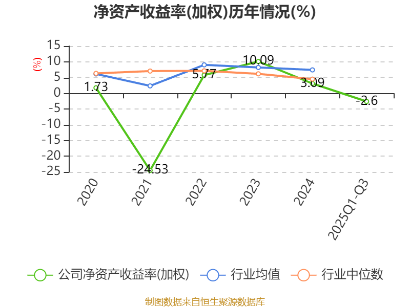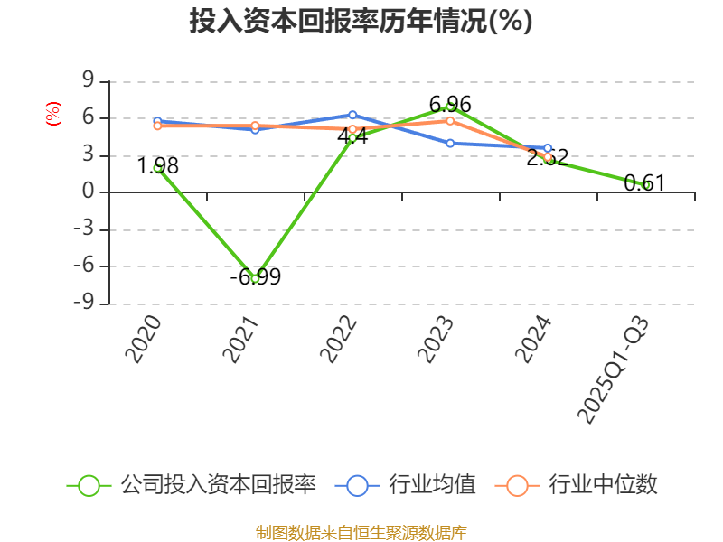 盈利能力方面, 2025年前三季度公司加权平均净资产收益率为-2.6%,同比下降2.93个百分点。公司2025年前三季度投入资本回报率为0.61%,较上年同期下降0.18个百分点。