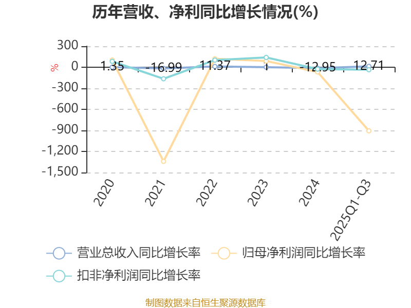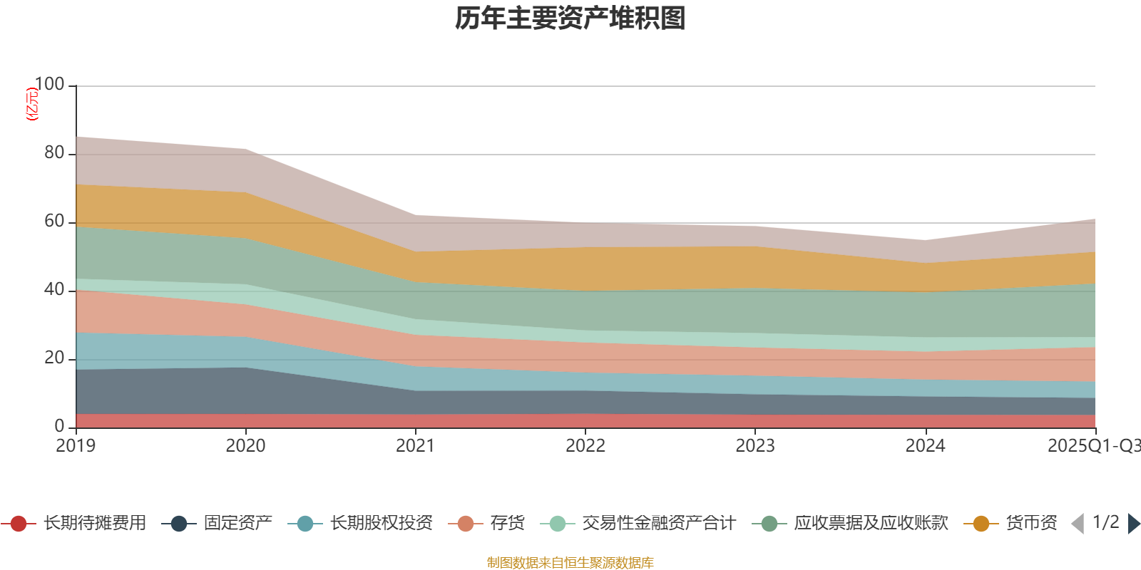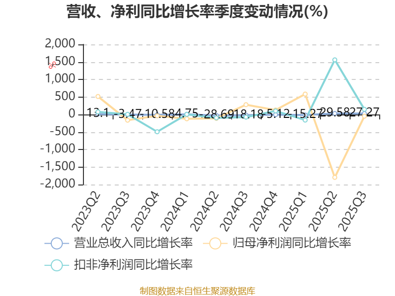 资产重大变化方面,截至2025年三季度末,公司交易性金融资产合计较上年末减少29.65%,占公司总资产比重下降2.79个百分点;商誉占公司总资产的2.76%,上年末为0;固定资产较上年末减少7.73%,占公司总资产比重下降1.69个百分点;应收票据及应收账款较上年末增加19.06%,占公司总资产比重上升1.66个百分点。