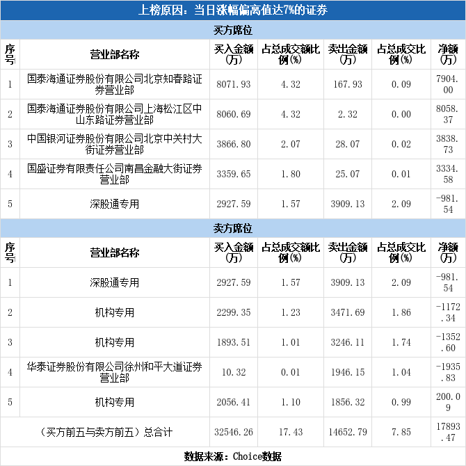 深交所2025年12月19日交易公开信息显示,通鼎互联因属于当日涨幅偏离值达7%的证券、连续三个交易日内收盘价格涨幅偏离值累计20%而登上龙虎榜。通鼎互联当日报收7.16元,涨跌幅为9.98%,偏离值达9.01%,换手率23.50%,振幅13.82%,成交额18.67亿元。