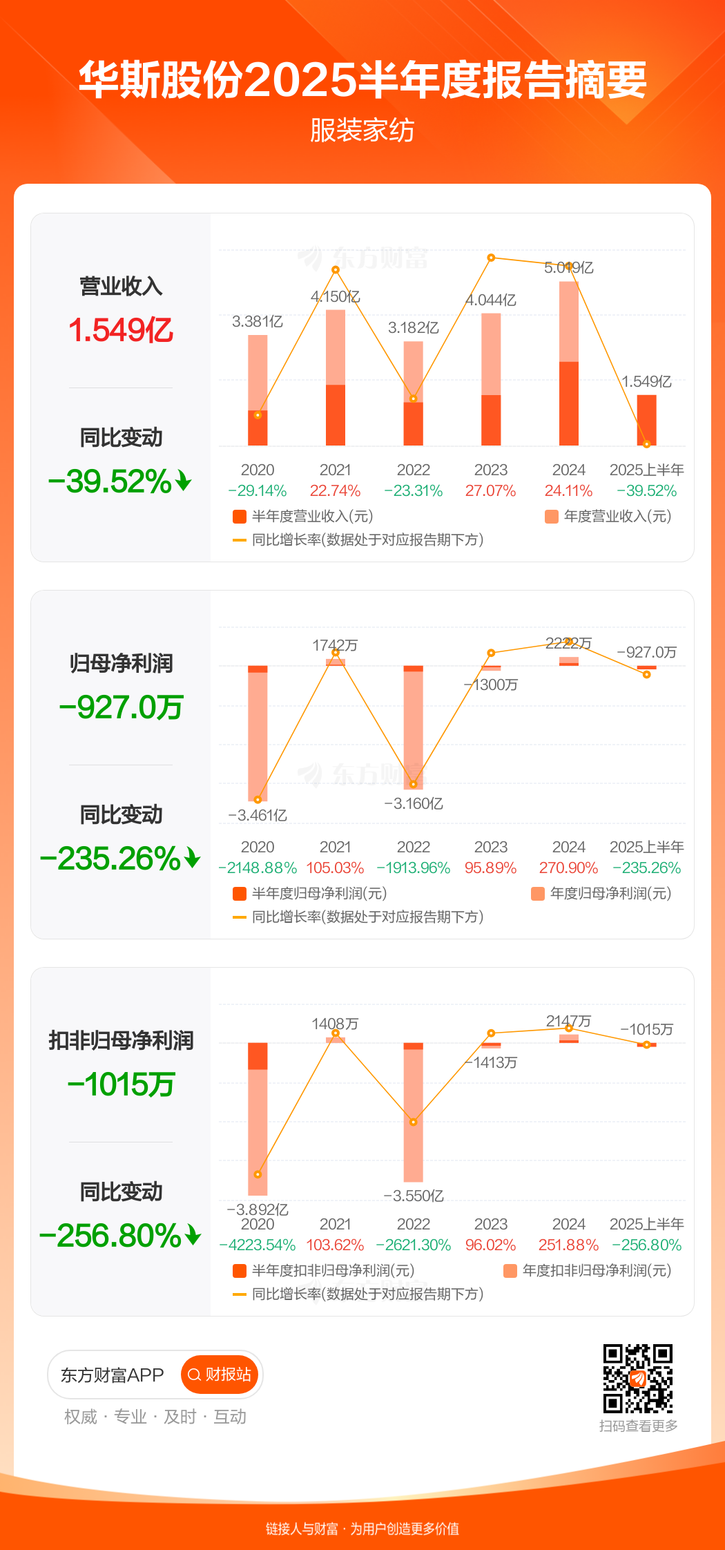 图解财报:华斯股份上半年归母净利润-927.04万元,上年同期685.37万元