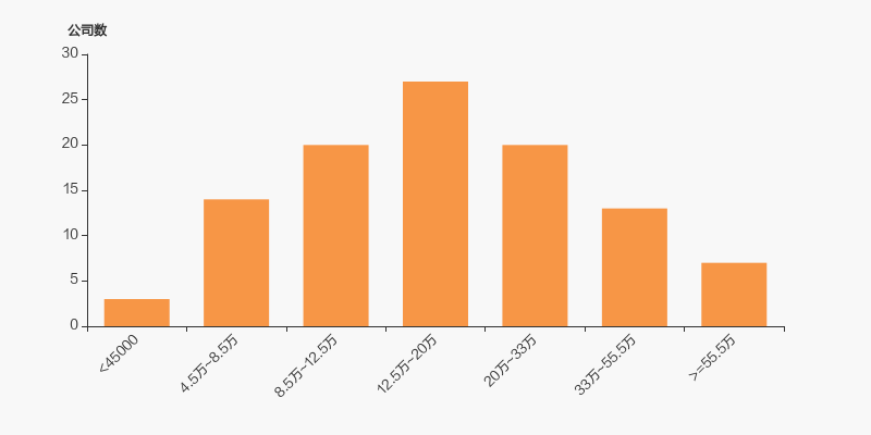 华斯股份股东户数低于行业平均水平。根据Choice数据,截至2025年10月20日纺织服饰行业上市公司平均股东户数为2.88万户。其中,公司股东户数处于1.5万~2.5万区间占比最高,为25.96%。