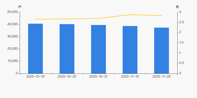 2025年10月10日至今,公司股东户数有所下降,区间跌幅为7.91%。2025年10月10日至2025年11月20日区间股价上涨6.77%。