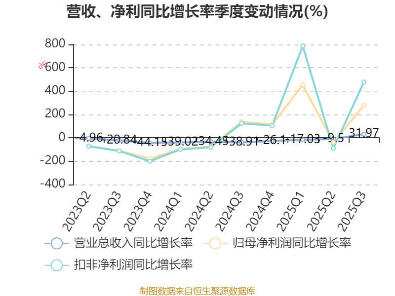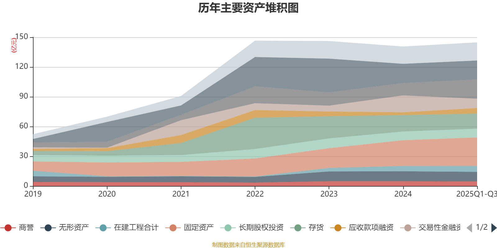 资产重大变化方面,截至2025年三季度末,公司交易性金融资产合计较上年末减少44.63%,占公司总资产比重下降5.61个百分点;应收票据及应收账款较上年末增加55.92%,占公司总资产比重上升4.59个百分点;应收款项融资较上年末增加92.03%,占公司总资产比重上升1.76个百分点;固定资产较上年末增加10.55%,占公司总资产比重上升1.35个百分点。