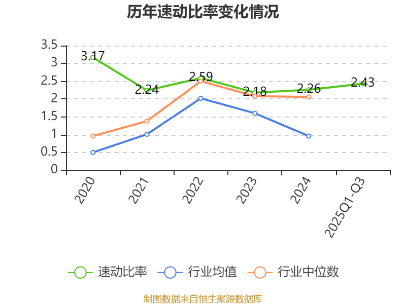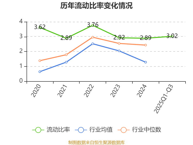 2025年前三季度,公司流动比率为3.02,速动比率为2.43。