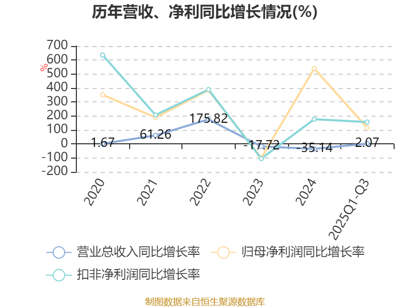 中证智能财讯雅化集团(002497)10月30日披露2025年第三季度报告。前三季度公司实现营业总收入60.47亿元,同比增长2.07%;归母净利润3.34亿元,同比增长116.02%;扣非净利润2.89亿元,同比增长156.87%;经营活动产生的现金流量净额为-3.67亿元,上年同期为5.6亿元;报告期内,雅化集团基本每股收益为0.2898元,加权平均净资产收益率为1.84%。