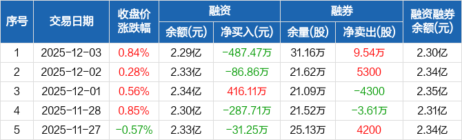 汉缆股份:融资净偿还487.47万元,融资余额2.29亿元(12-03)