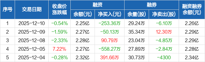 汉缆股份:融资净偿还253.36万元,融资余额2.25亿元(12-10)