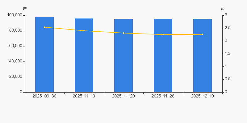 2025年9月30日至今,公司股东户数有所下降,区间跌幅为2.77%。2025年9月30日至2025年12月10日区间股价下降11.02%。
