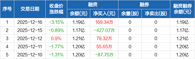 利源股份:融资净买入169.34万元,融资余额1.19亿元(12-16)