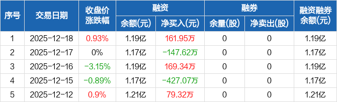 利源股份:融资净买入161.95万元,融资余额1.19亿元(12-18)