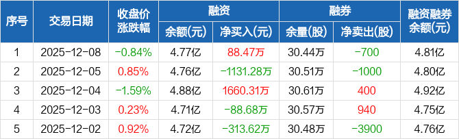 涪陵榨菜:融资净买入88.47万元,融资余额4.77亿元(12-08)