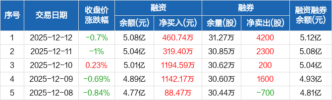 涪陵榨菜:融资余额5.08亿元,创近一年新高(12-12)