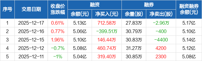 涪陵榨菜:融资余额5.13亿元,创近一年新高(12-17)