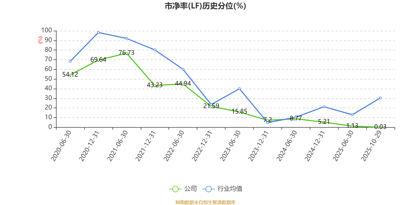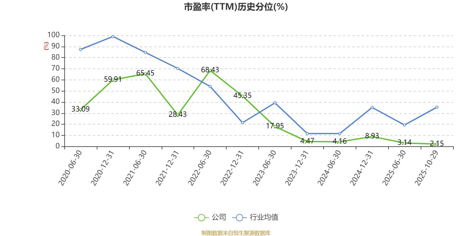 市盈率、市净率为负时,不显示当期分位数,会导致折线图中断。