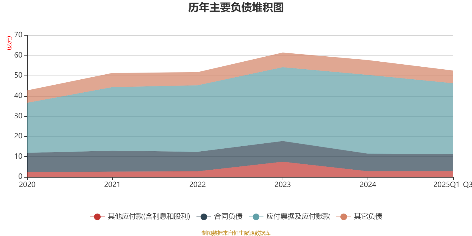 负债重大变化方面,截至2025年三季度末,公司应付票据及应付账款较上年末减少9.86%,占公司总资产比重下降1.89个百分点;应付职工薪酬较上年末减少78.54%,占公司总资产比重下降0.86个百分点;应交税费较上年末增加26.51%,占公司总资产比重上升0.32个百分点;合同负债较上年末减少3.62%,占公司总资产比重下降0.1个百分点。