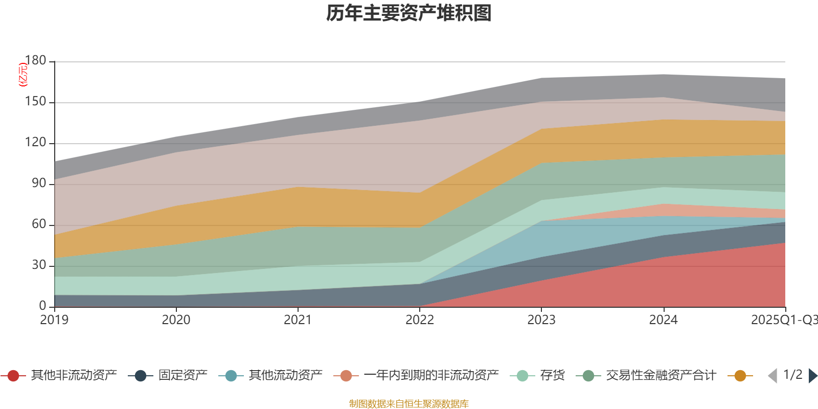 资产重大变化方面,截至2025年三季度末,公司其他非流动资产较上年末增加28.9%,占公司总资产比重上升6.64个百分点;其他流动资产较上年末减少79.03%,占公司总资产比重下降6.51个百分点;货币资金较上年末减少58.4%,占公司总资产比重下降5.52个百分点;交易性金融资产合计较上年末增加27.06%,占公司总资产比重上升3.75个百分点。