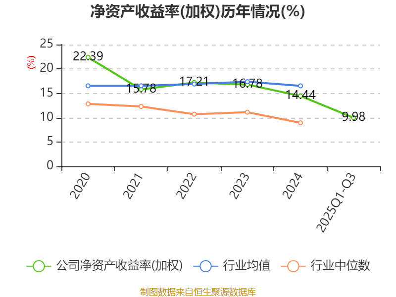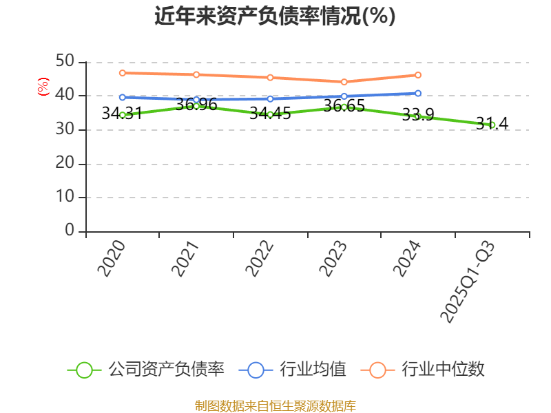 盈利能力方面, 2025年前三季度公司加权平均净资产收益率为9.98%,同比下降1.03个百分点。公司2025年前三季度投入资本回报率为9.16%,较上年同期下降0.67个百分点。