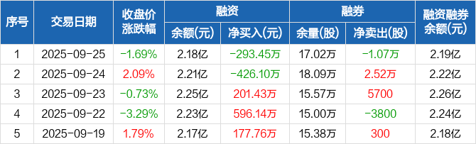 中顺洁柔:融资净偿还293.45万元,融资余额2.18亿元(09-25)