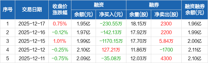 中顺洁柔:融资余额1.95亿元,创近一年新低(12-17)