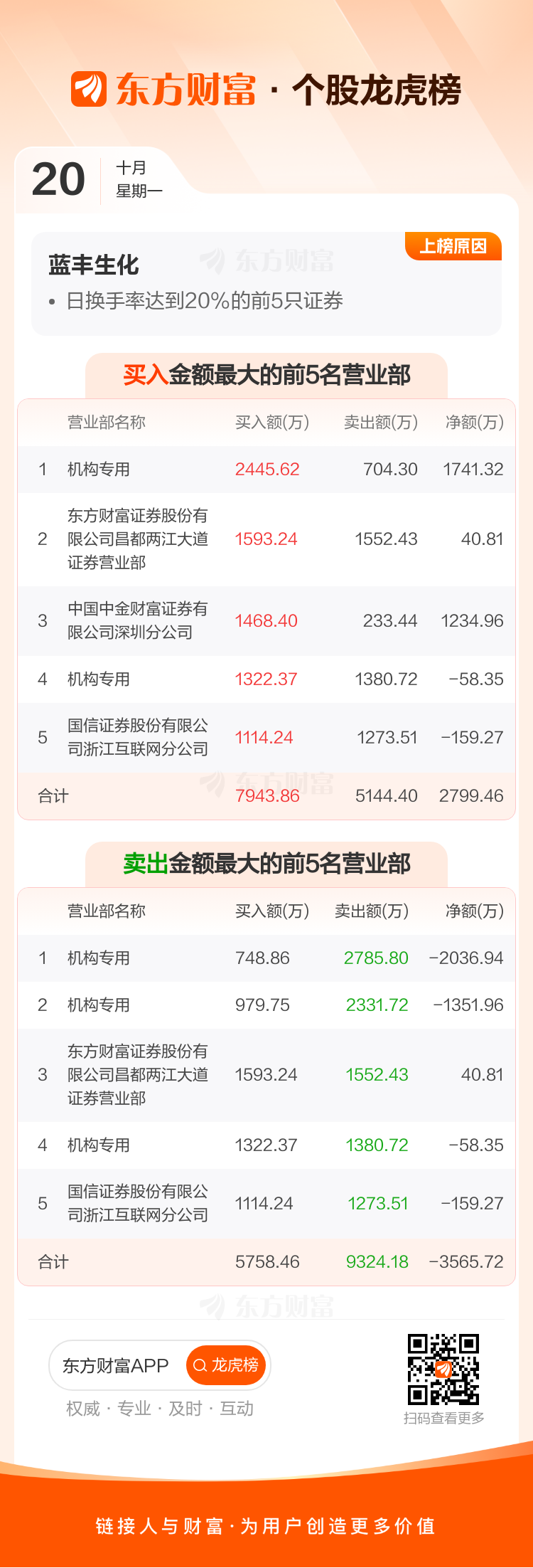 蓝丰生化(002513)龙虎榜数据(10-20)