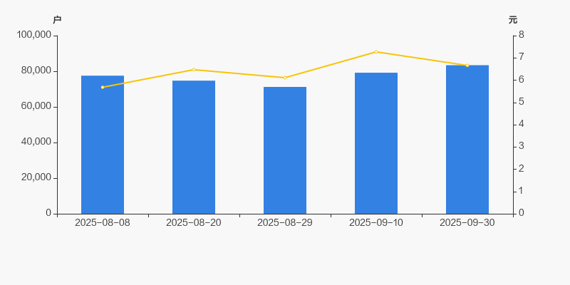 2025年8月8日至今,公司股东户数有所增长,区间涨幅为7.59%。2025年8月8日至2025年9月30日区间股价上涨17.25%。