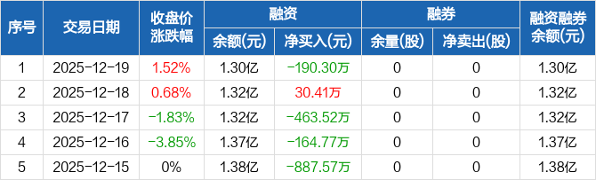 日发精机:融资净偿还190.3万元,融资余额1.3亿元(12-19)