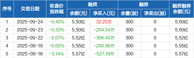 齐峰新材:融资净买入32.25万元,融资余额5.5亿元(09-24)