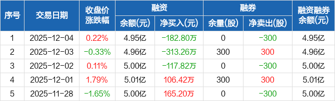 齐峰新材:融资余额4.95亿元,创近一年新低(12-04)