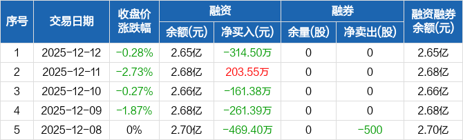 山东矿机:融资余额2.65亿元,创近一年新低(12-12)