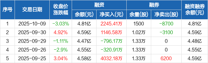 新时达:融资净买入2245.41万元,融资余额4.81亿元(10-09)