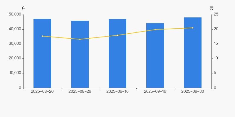 2025年8月20日至今,公司股东户数有所增长,区间涨幅为2.15%。2025年8月20日至2025年9月30日区间股价上涨16.03%。