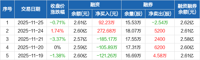 天顺风能:融资净买入92.23万元,融资余额2.61亿元(11-25)