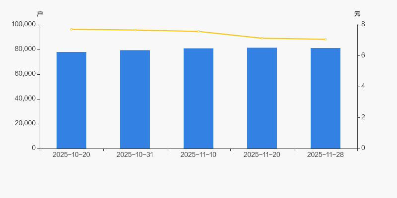 2025年10月20日至今,公司股东户数有所增长,区间涨幅为4.11%。2025年10月20日至2025年11月28日区间股价下降8.43%。