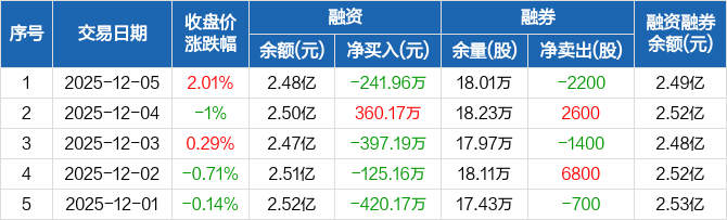 天顺风能:融资净偿还241.96万元,融资余额2.48亿元(12-05)