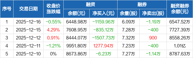 鸿路钢构融资融券信息显示,2025年12月16日融资净偿还1159.96万元;融资余额6448.98万元,较前一日下降15.24%。