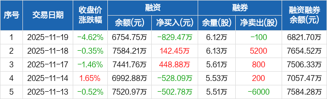 万和电气:融资净偿还829.47万元,融资余额6754.75万元(11-19)
